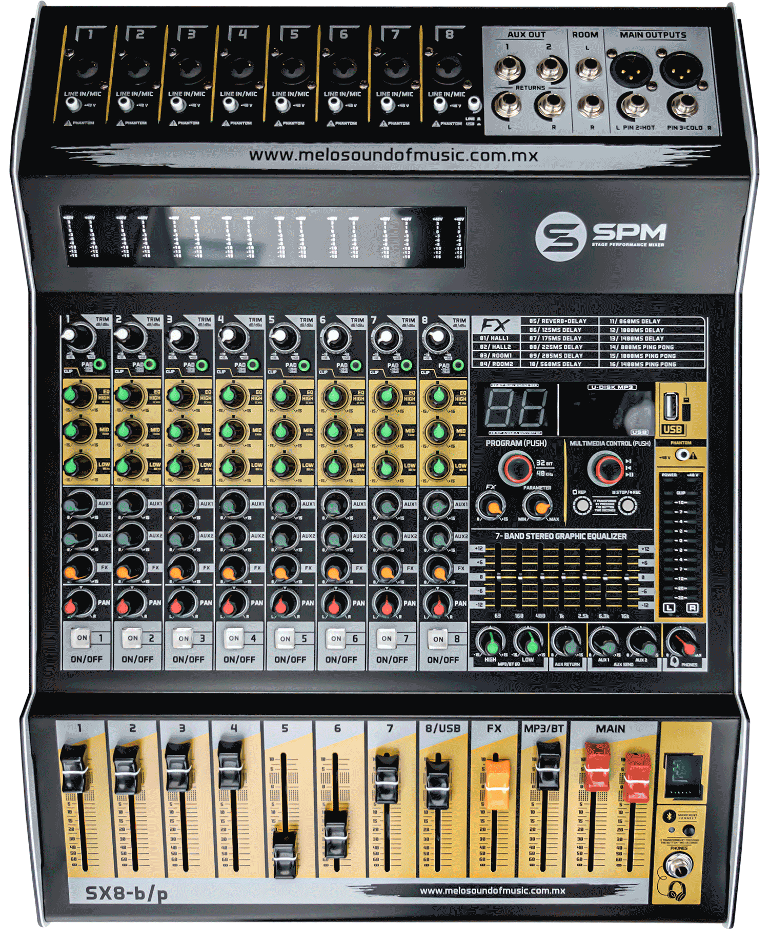 Mezcladora Profesional de 8 Canales MELO Modelo: SX8 BP